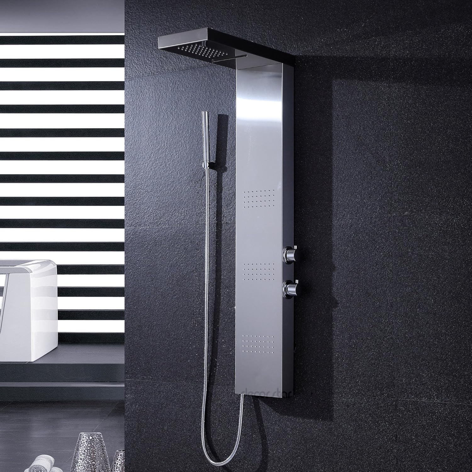 Solid brass finish. Installing a shower system with showerhead and hand shower sprayer whether you are building a new home or remodeling an existing bathroom a delta shower system with hand shower will help you create the shower of your dreams. Wall mounted 34 price. 8 jet shower panel system in stainless steel with adjustable rainfall shower head handshower wand and tub spout utilitarian by design and ultra durable utilitarian by design and ultra durable our large 65 in.